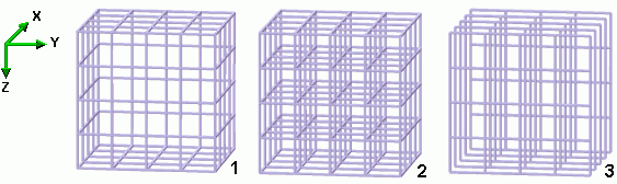 für die Stäbe in Y-Richtung außen und für die Stäbe in Z-Richtung alle. |
