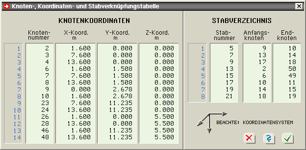 Angaben gemacht: Für die Stäbe in X-Richtung keine,