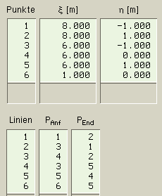 die einzelnen Abschnittslängen tabellarisch vorgegeben