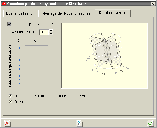 Zur Generierung der Stäbe kann pro Richtung festgelegt