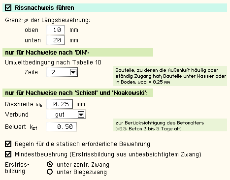 | Das Registerblatt behandelt die Parameter für Nachweise nach DIN 1045 (7.88). |