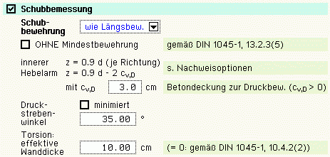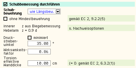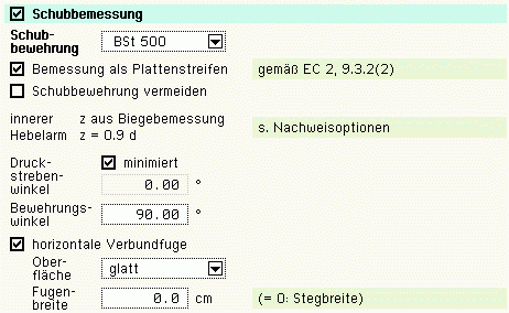 | Bewehrungswinkel: Winkel der Querkraftbewehrung zur Längsbewehrung |