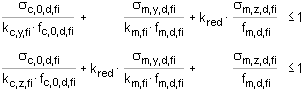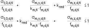 | Neben den Nachweisen nach Gl. 31-33 kann bei der Berechnung der Querschnittsausnutzung eine örtliche Plastizierung erlaubt werden (DIN 18800, El. 747, El. 749, El. 750). |