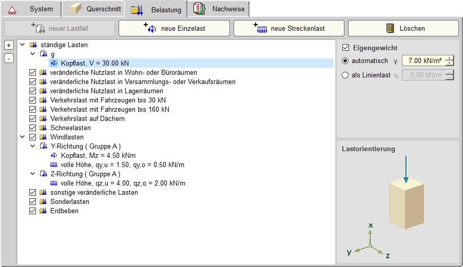 -HOST, Holzeinzelstütze, Eingaberegister Belastung