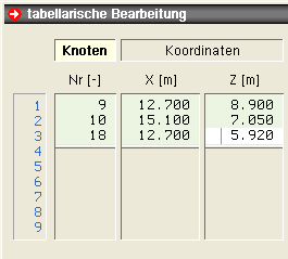 | Knoten und Stäbe tabellarisch bearbeiten |