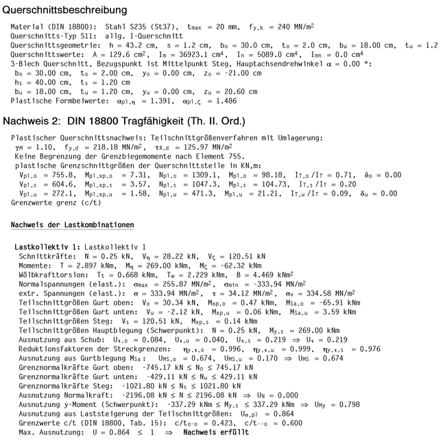St. Venant'scher Torsion und Wölbkrafttorsion nachgewiesen werden. |