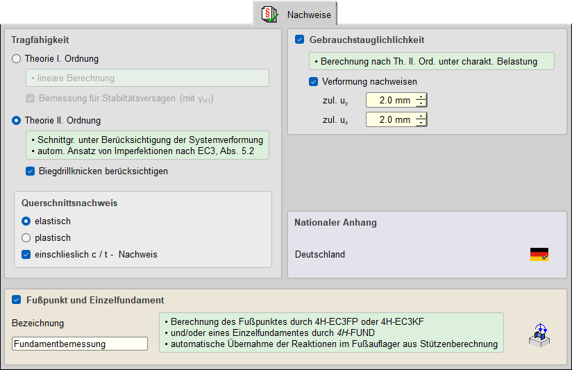 -STAST, Stahleinzelstütze, Eingaberegister Nachweise