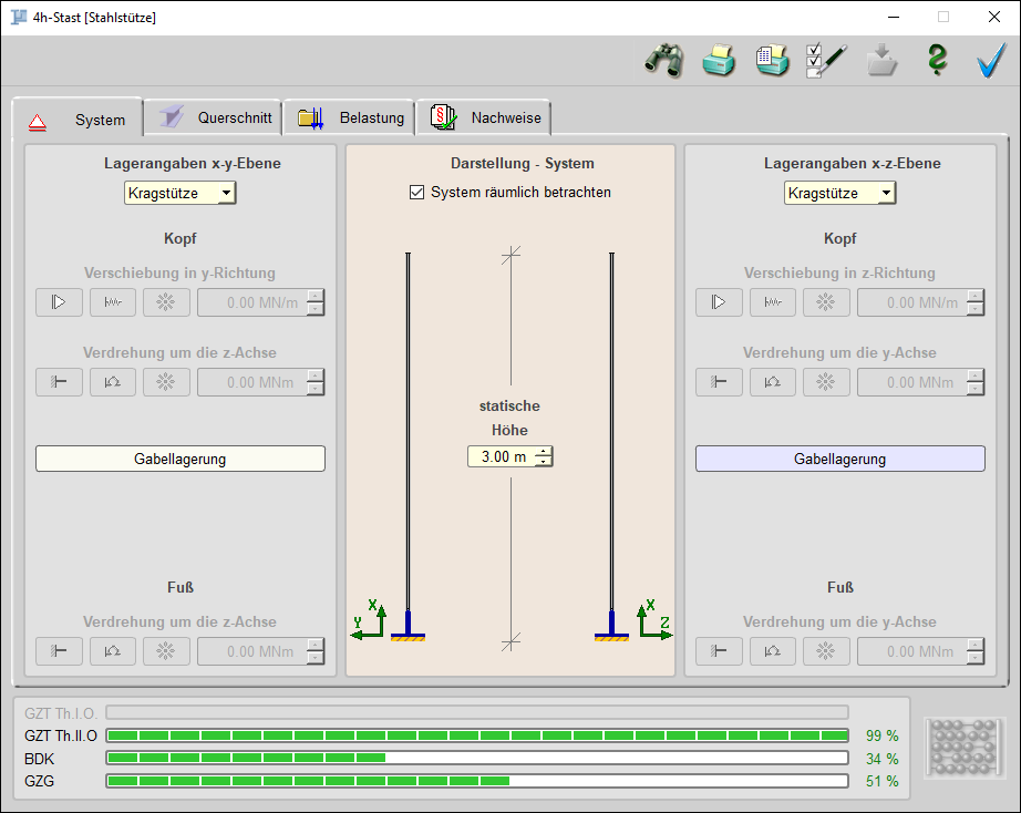 4H-STAST, Stahleinzelstütze, Eingabeoberfläche