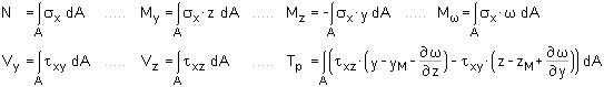 der Normal- bzw. Schubspannungen über den Querschnitt. |