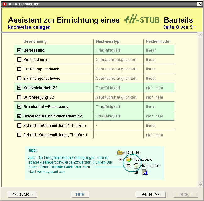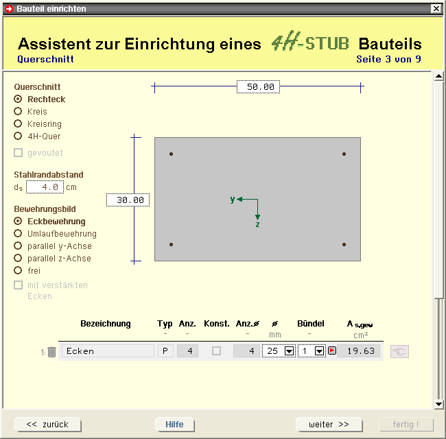 | Die Ergebnisse in 4H-STUB bzgl. der Hauptachsen
