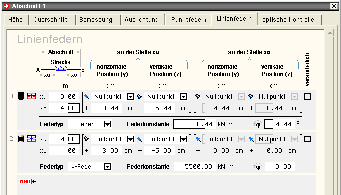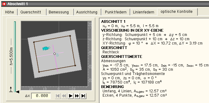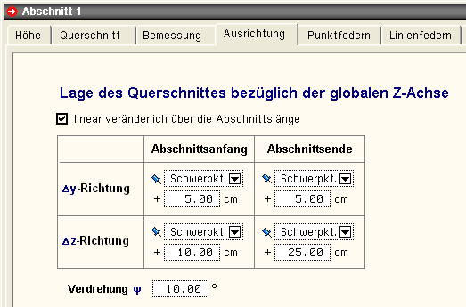 des Nullpunkts und den Krümmungen um die Querschnittsachsen berechnen. |