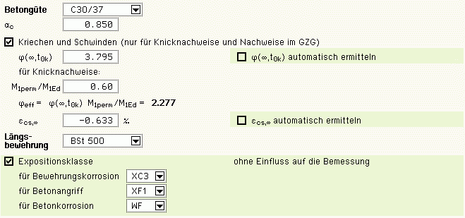 C30/37 und Längsbewehrung aus BSt 500 mit der Normalkraft