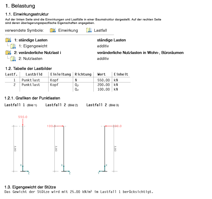 aller Lastkombinationen aufgeführt. |