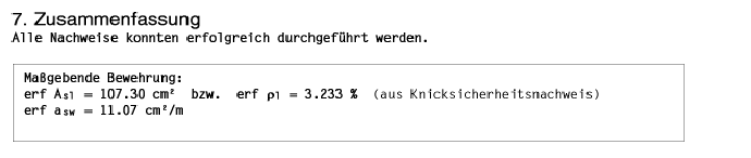 | In der Ergebnisausgabe werden zuerst die Tragfähigkeitsnachweise