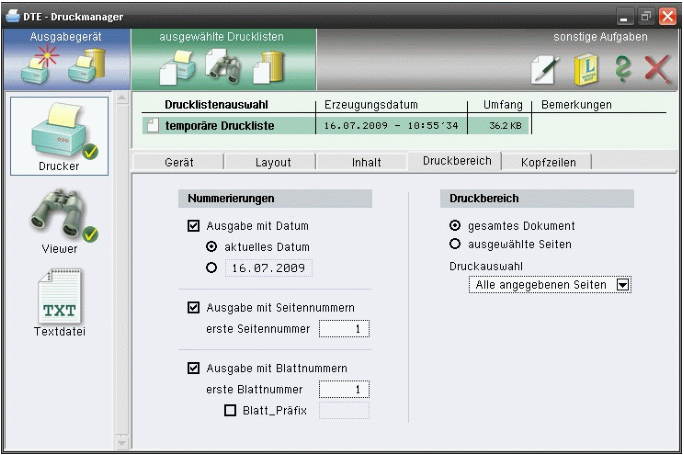 | öffnet das Fenster zur Drucklistenvorschau (DTE® - Viewer) |