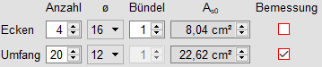 | Die Bewehrungswahl ist aktiv bei Wahl der