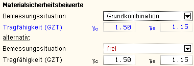für die Grundkombination, Erdbeben-Kombination oder außergewöhnliche Kombination nach EC 0 vom Programm vorbelegt werden (s. NA). |