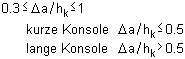 unterscheidet die Berechnungen für eine Lastkonsole und eine Auflagerkonsole. |