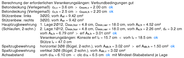 | Im Anschluss an die Ergebnisse sind die zur Bemessung