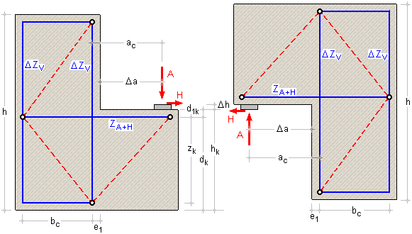 Vertikallast A und Δh für die Horizontallast H sind anzugeben. |