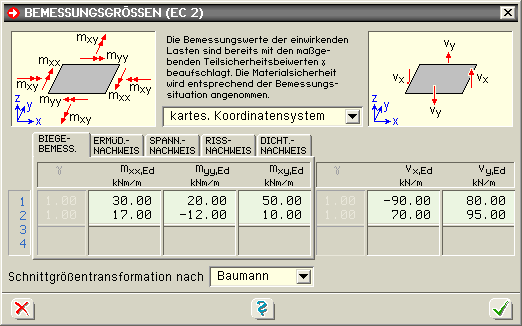 | Es ergeben sich Bemessungsgrößen, die entsprechend