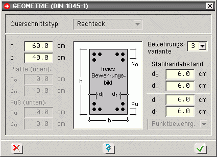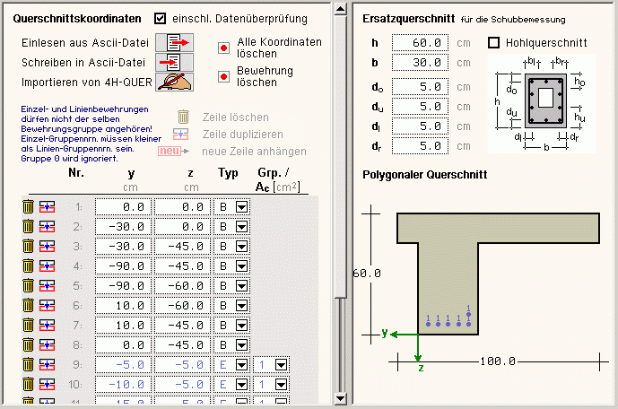 zunächst die schon eingegebenen Querschnittsabmessungen