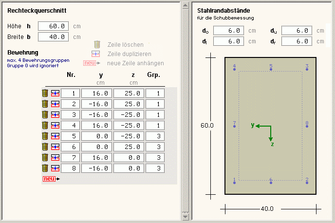 | Jedem Stabquerschnitt ist die Nummer seiner Bewehrungsgruppe