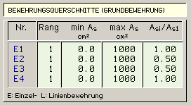 | Für jeden Lastfall wird die erforderliche Längsbewehrung