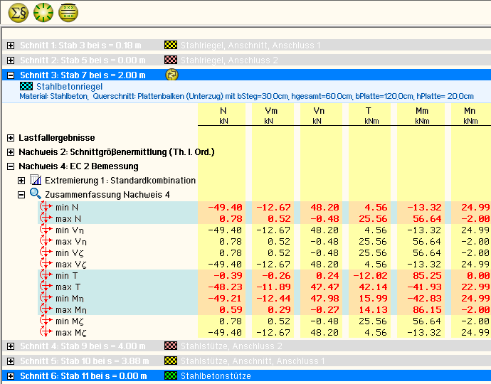 | Der Dehnungszustand berechnet für jede Schnittgrößenkombination