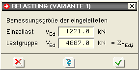Gesamtkraft V werden folgende maßgebenden Werte berechnet: |