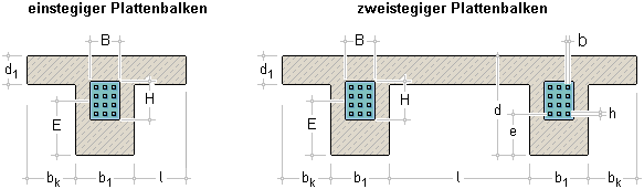 (Variante 1) bzw. zweistegige (Variante 2) Plattenbalken können