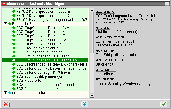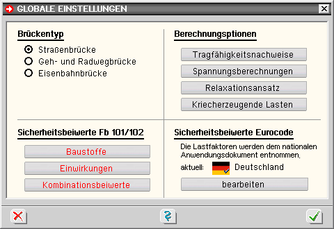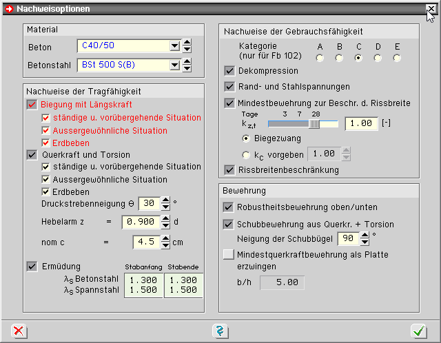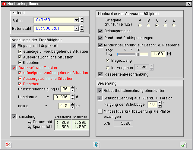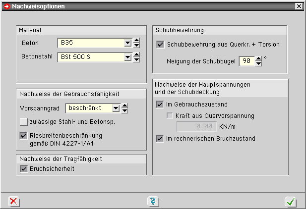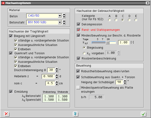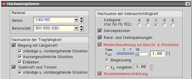 | Wahl des Nachweises im End- oder Bauzustand über den Optionsschalter |