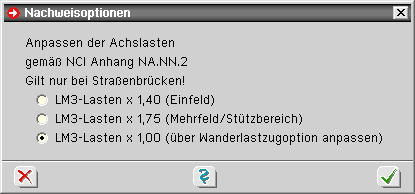 Über die Optionsschalter Straßenbrücke / Geh- und Radwegbrücke / Eisenbahnbrücke wird