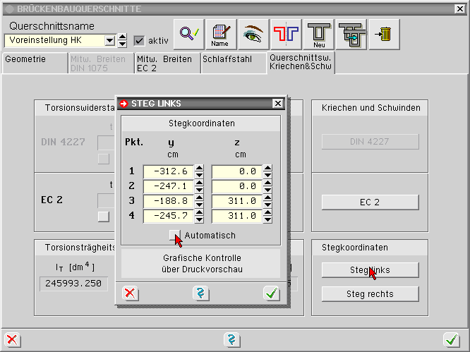 Die kriecherzeugenden Lasten werden automatisch vom Programm entspr. DIN EN 1992, 5.10.6, bzw.