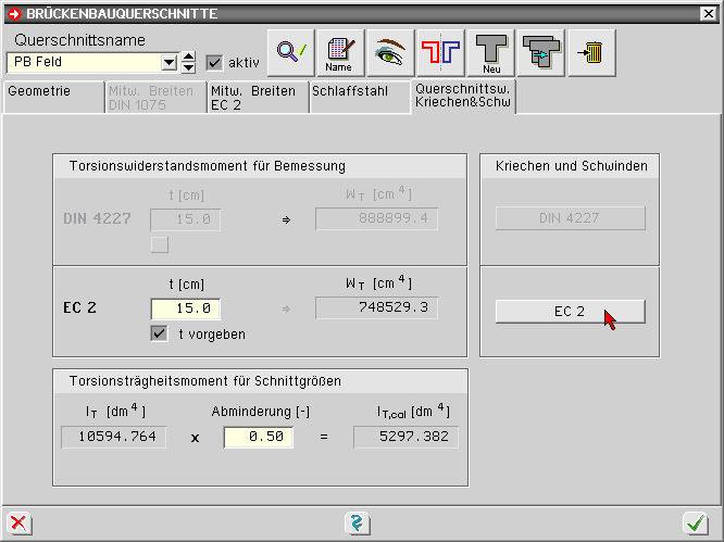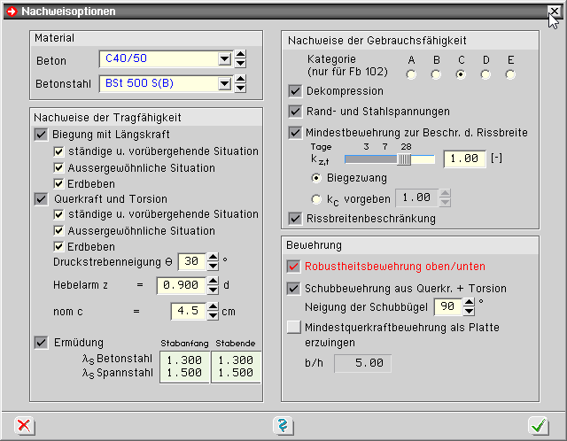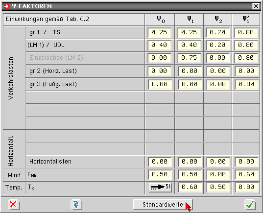 nach Eurocode bzw. DIN Fachbericht, die vom Programm automatisch gesetzt werden. |