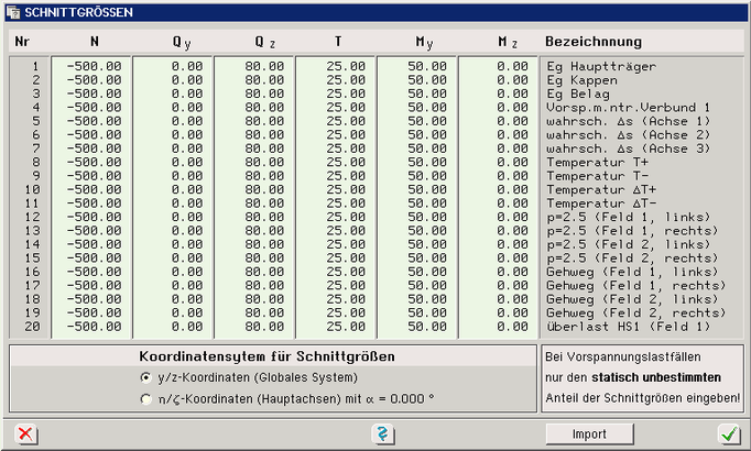 | Als Lasten werden neben den Vorspannkräften ausschließlich die Lastfälle des Typs G1 berücksichtigt. |