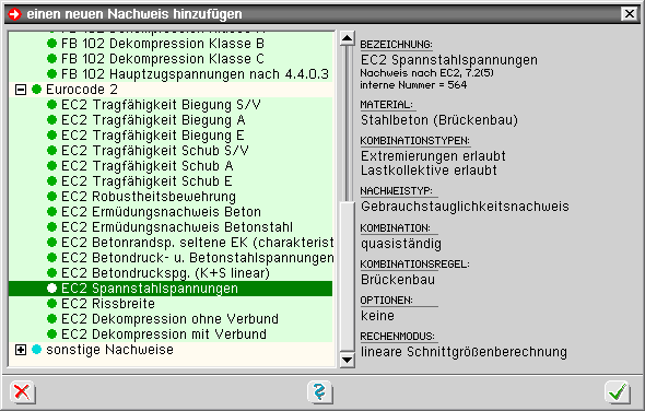 den Nachweis durchführen zu können, muss der Nachweis Betonrandspannungen unter seltener Einwirkungskombination eingerichtet werden, da dieser Nachweis notwendig ist um