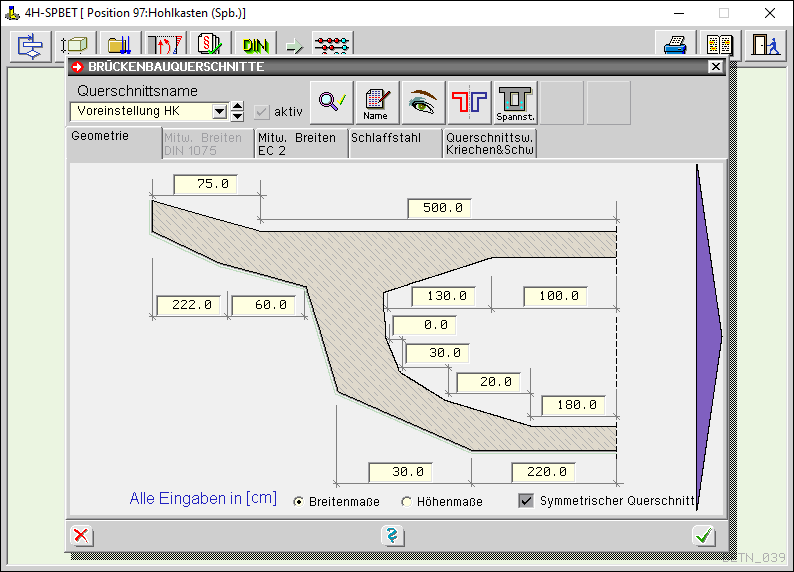 -BETON, Spannbetonnachweise, Eingabeoberfläche