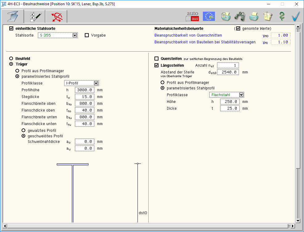 -EC3BL, Eingabeoberfläche - Register 1 - Material und Geometrie