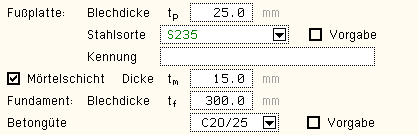 und die Stahlsorte gewählt. |
