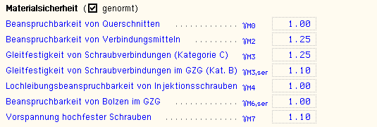 Materialsicherheitsbeiwerte entweder auf EC3-1-8, 4.3.2, Tab.4.1,