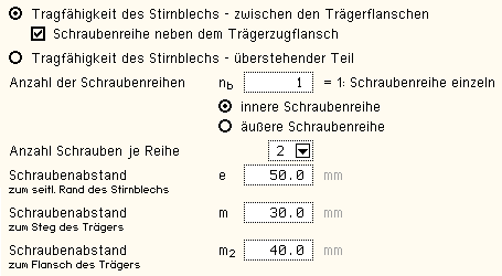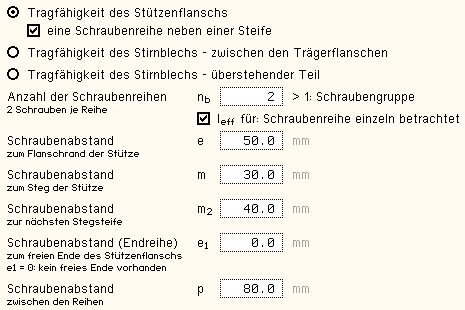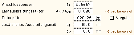 entsprechenden Registerblättern auch Felder zur Eingabe der Belastung