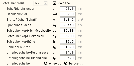 Die Rechenparameter für die gängigen Schraubengrößen