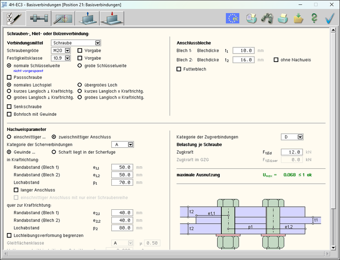 | Ankerschrauben sind bei Wahl des EC 3-1-8:2010 nicht verfügbar. |