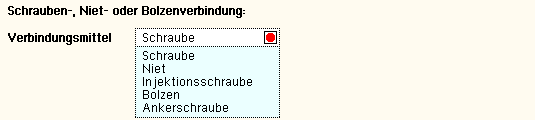 | I.A. reicht die Ausgabe der Typbezeichnungen der Verbindungsmittel