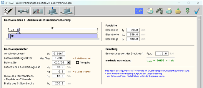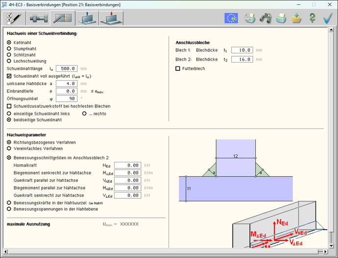 Typis. IS,IW,IG,IK-Anschluss) wird die Herleitung der Bemessungsgrößen protokolliert. |