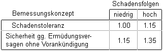Bemessungskonzepts und der Schadensfolgen den entspr.