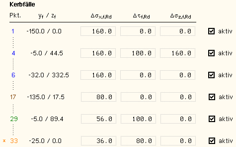 | Die Koeffizienten dürfen bestimmt werden zu (DIN EN 1993-6, Tab. 5.2; cxi und cyi sind positiv bei Zugspannungen an der Flanschunterseite) |