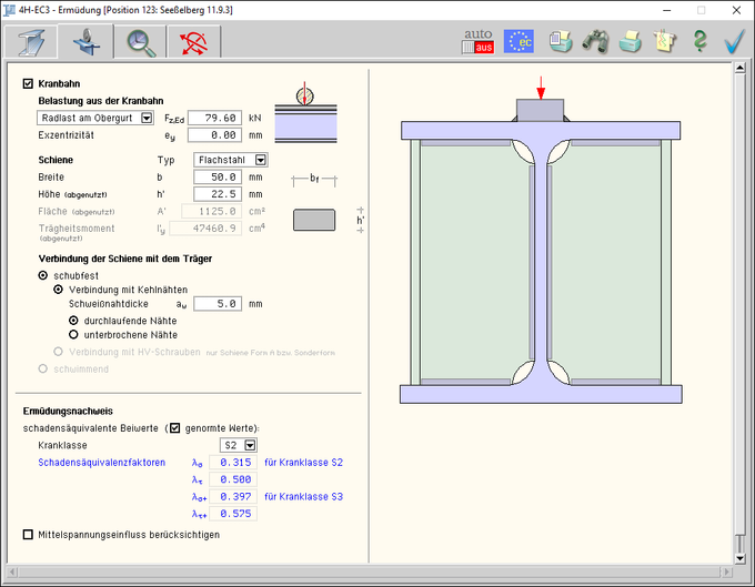 Ermüdungsnachweis, wird ein Doppel-T-Profil unter Errmüdungsbelastung