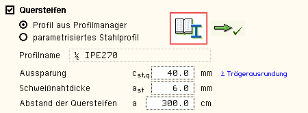 | Der aktuelle Querschnitt wird im pcae-Planerstellungsmodul